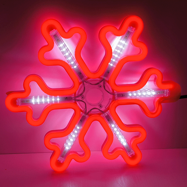 Уличная макушка на елку снежинка "Бегущая" маленькая 38 см, красный двойная